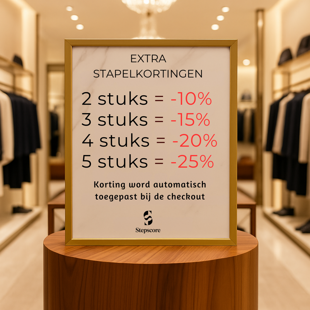 Mis het niet: tijdelijk stapelkortingen op de hele collectie. Hoe meer je shopt, hoe meer je bespaart. Alleen geldig deze week!
